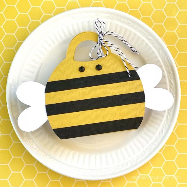Our honey of a Bee Purse is sweet! and will surely tickle the heart of anyone you give it to. Inside, you can tuck a sweet treat or gift card and note. Perfect for a place setting, friendship gift or party favor… Available as a digital downloadable svg file at pebblesinmypocket.com, etsy or Lori Whitlock.com.
